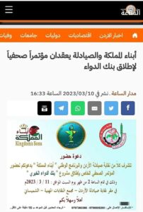 وكان كلاً من البرنامج الوطني ” أبناء المملكة ” ونقابة صيادلة الأردن ، قد إتفقا مؤخراًعلى الشراكة في إطلاق ” بنك الدواء الخيري ” ، بهدف تنفيذ أيام طبية مجانية في مناطق مختلفة من المملكة تستهدف الشرائح الفقيرة والضعيفة من المجتمع ، وأيضاً بهدف تنفيذ حملات توعوية في أهمية الإستخدام الآمن للدواء وبناءً على وصفات طبية معتمدة ، وأيضاً بهدف التوعية ضد آفة المخدرات بكافة أشكالها ، وتحديداً الأدوية المصنفة ضمن المواد المخدرة .