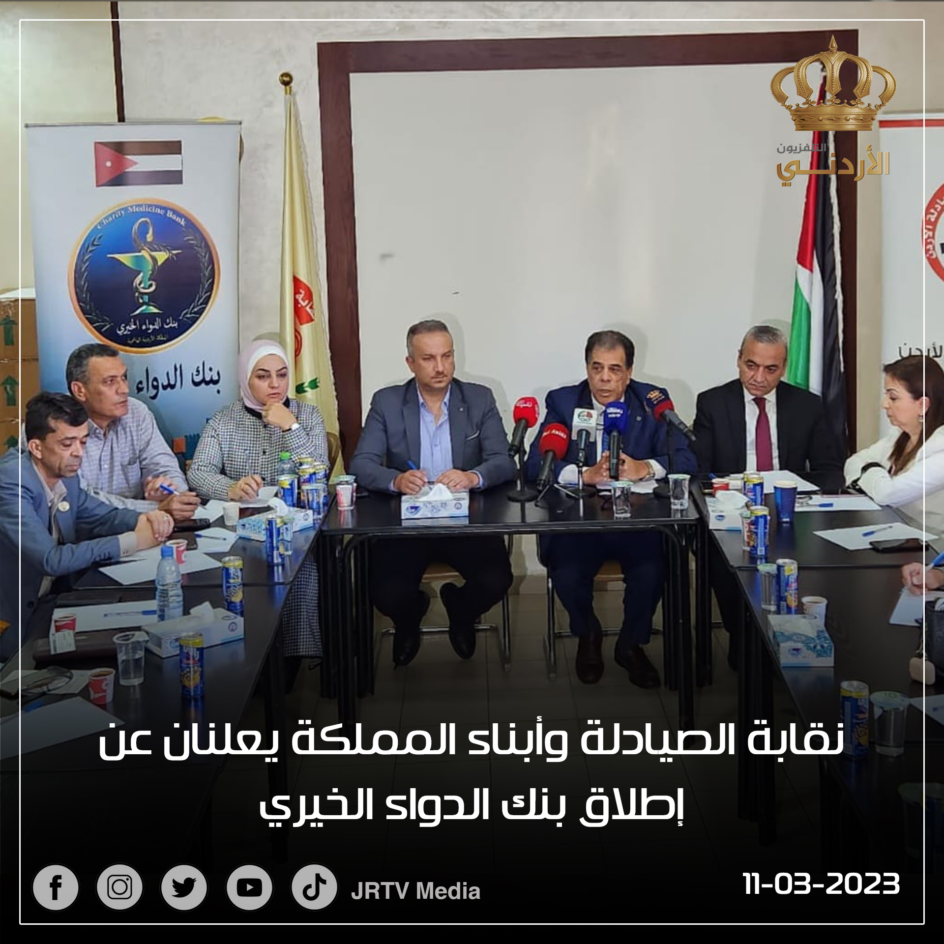 في مؤتمر صحفي عُقد ظهر اليوم السبت في مجمع النقابات المهنية ، تم الإعلان عن إطلاق بنك الدواء الخيري ، بشراكة ما بين نقابة صيادلة الأردن والبرنامج الوطني ” أبناء المملكة ” ، بهدف تأمين الأدوية بشكلٍ مجاني للمرضى الفقراء الغير قادرين على دفع ثمن أدويتهم .