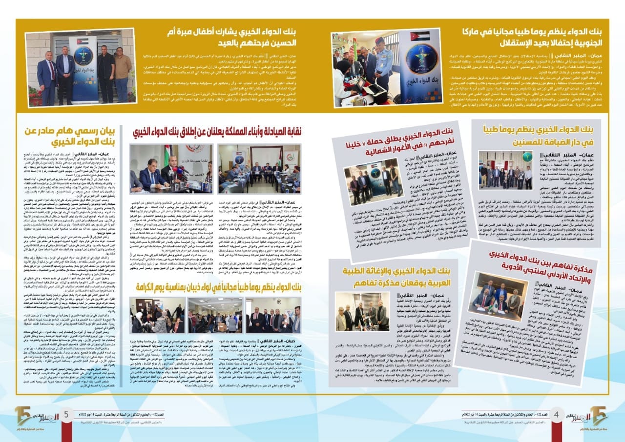 مطبوعة ” المنبر النقابي ” مشكورة تُسلط الضوء في عددها رقم 422 على أنشطة وإنجازات ” بنك الدواء الخيري ” في المرحلة السابقة .