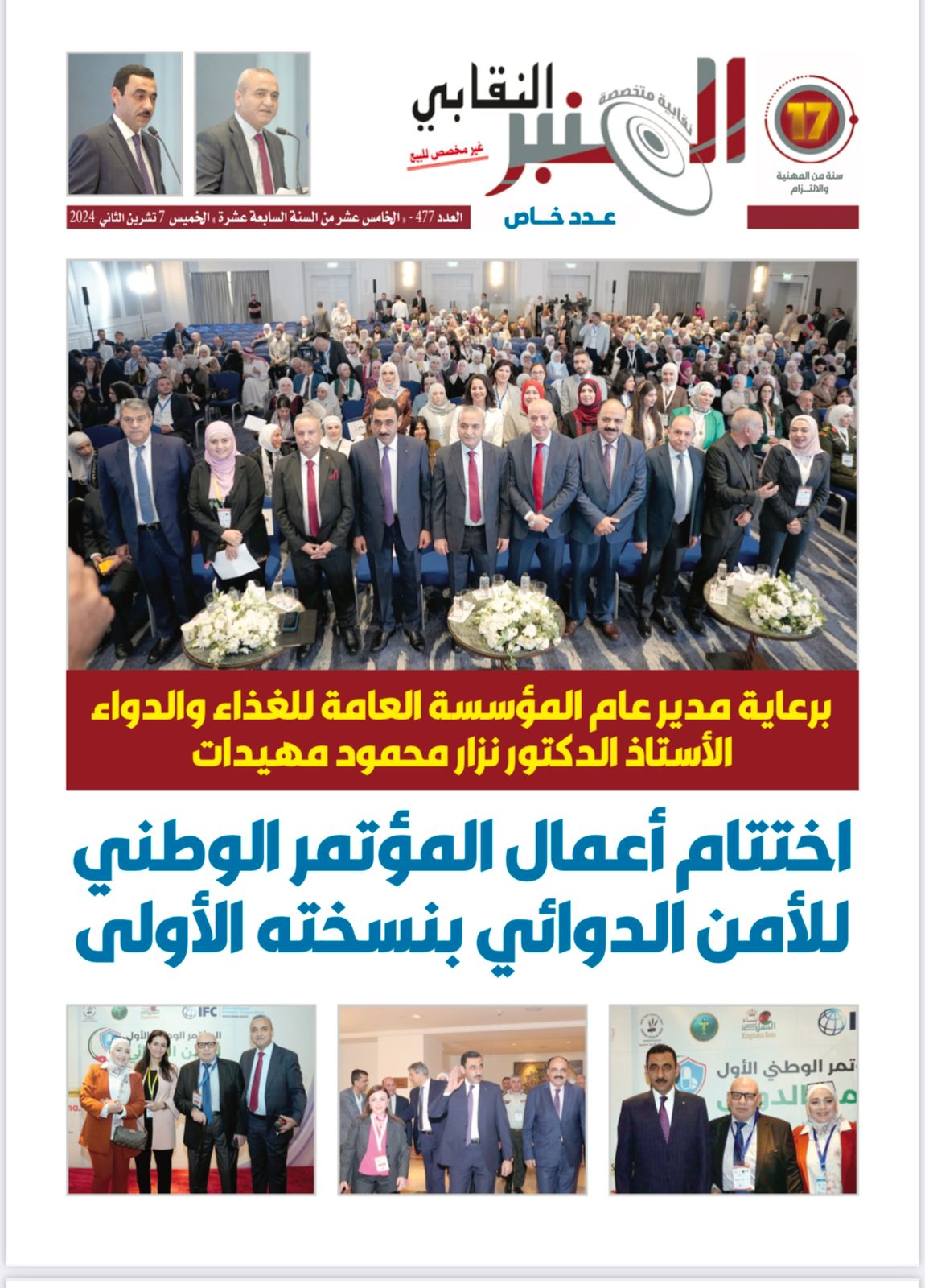📙 مجلة ” المنبر النقابي” مشكورة تنشر العدد رقم ٤٧٧ كعدد خاص عن المؤتمر الوطني الأول للأمن الدوائي الذي نفذهُ بنك الدواء الخيري وبالشراكة مع المؤسسة العامة للغذاء والدواء ونقابة الصيادلة وهيئة أبناء المملكة .
