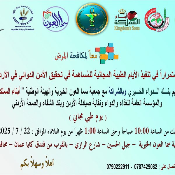 بنك الدواء الخيري ينظم يوماً طبياً مجانياً في جبل الحسين لخدمة المجتمع المحلي واللاجئينIslamيوليو 22, 2025نظّم بنك الدواء الخيري الأردني يوماً طبياً مجانياً في منطقة جبل الحسين، استهدف من خلاله المجتمع المحلي ... اقرأ أكثر