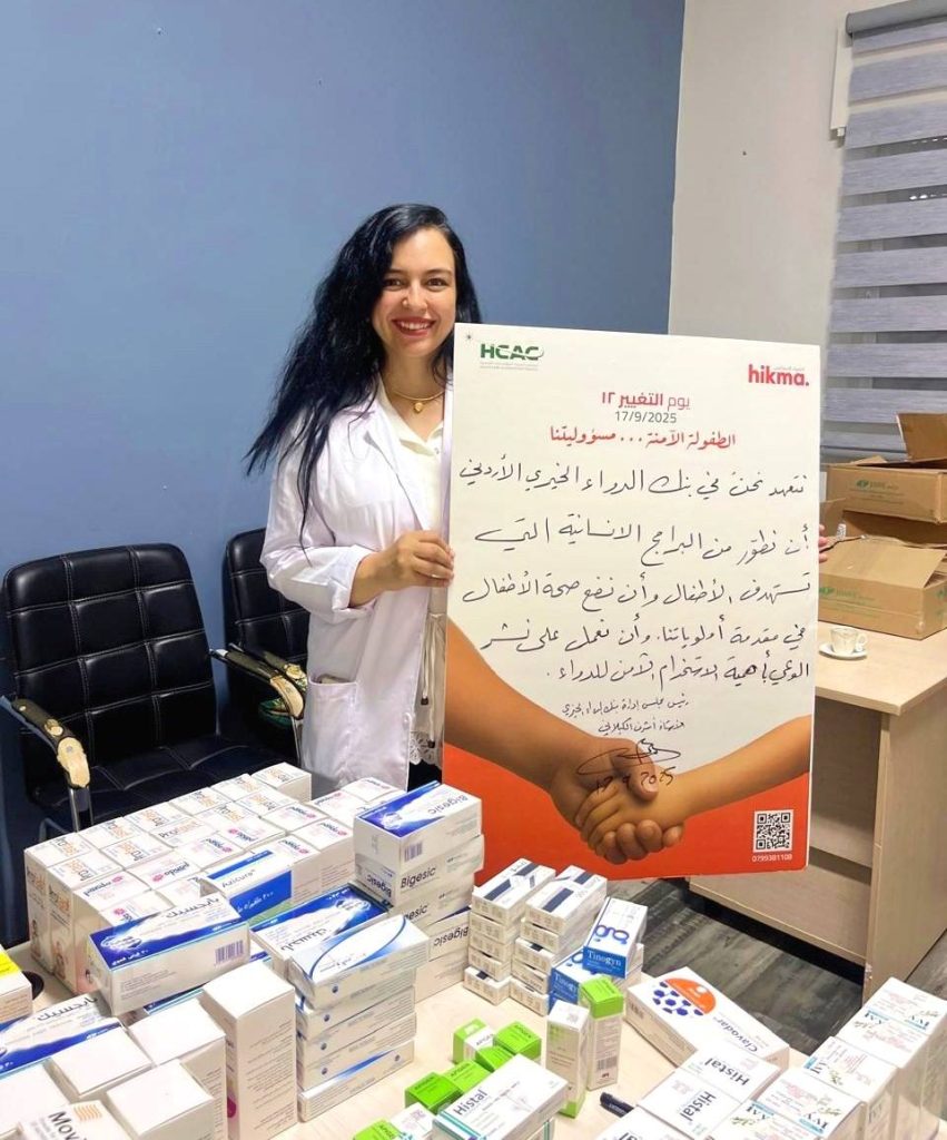نظّم بنك الدواء الخيري الأردني، بالشراكة مع هيئة أبناء المملكة، وبنك الشفاء والصحة الأردني، وحملة البر والإحسان، يومًا طبيًا مجانيًا في مبرة أم الحسين بالعاصمة عمّان، استهدف أطفال المبرة، وذلك احتفالًا بـ«يوم التغيير 12».