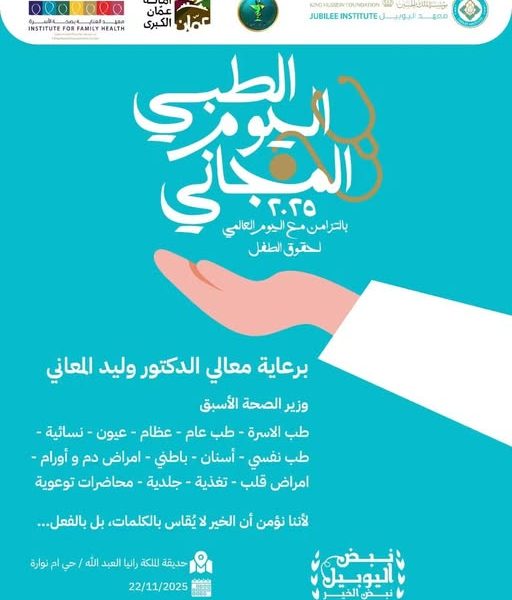 برعاية معالي الدكتور وليد المعاني، واحتفالًا باليوم العالمي لحقوق الطفل، يشارك بنك الدواء الخيري الأردني يوم غدٍ ... اقرأ أكثر