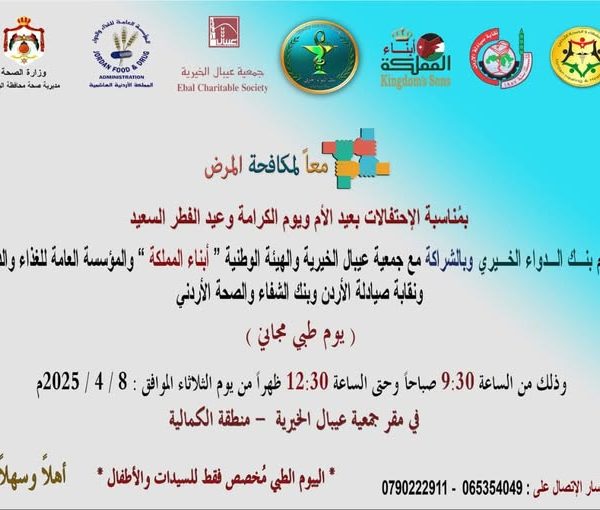 بنك الدواء الخيري ينظم يوماً طبياً مجانياً للسيدات والأطفالIslamأبريل 7, 2025بمشيئة الله يُقيم بنك الدواء الخيري يوم غدٍ الثلاثاء وبالشراكة مع جمعية عيبال الخيرية ، وهيئة أبناء ... اقرأ أكثر