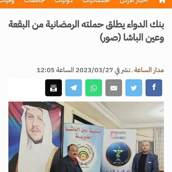 وكالة مدار الساعة الإخبارية : بنك الدواء الاردني يطلق حملة رمضانية